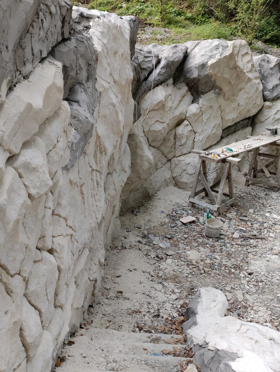 Как правило, искусственные гроты, пещеры, водопады и прочие имитационные композиции создаются из искусственного камня, которые изготавливается из современных материалов содержащих элементы из пластмассы или полимер бетон который выделяет вредные для здоровья вещества , но мы создаем все из натуральных материалов таких как цемент, песок, пластификаторы и гидроизоляция которые не выделяют вредных химических веществ По своему внешнему виду наша пещера или искусственные скалы не будут отличатся от натуральной пещеры а возможно превосходить её по красоте, и те кто был в Абхазии а в частности в Новоафонской пещере, то отличий вы не найдете не в чем, а прочность искусственных скал, пещер, или каких то фигур также высока как у природных материалов. Кроме того, искусственные изделия из Арт бетона легко содержать в идеальном порядке, они не требуют сложного ухода. При желании вы можете изменить ваше помещение или будь то улица построив искусственную пещеру, скалу с водопадом, альпийскую горку с декоративным валуном , нисколько не опасаясь воздействия влаги или перепадов температуры, поскольку данный материал стоек к любым климатическим воздействиям.